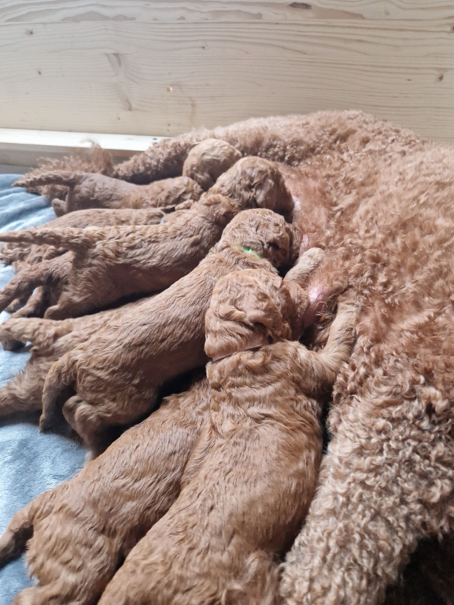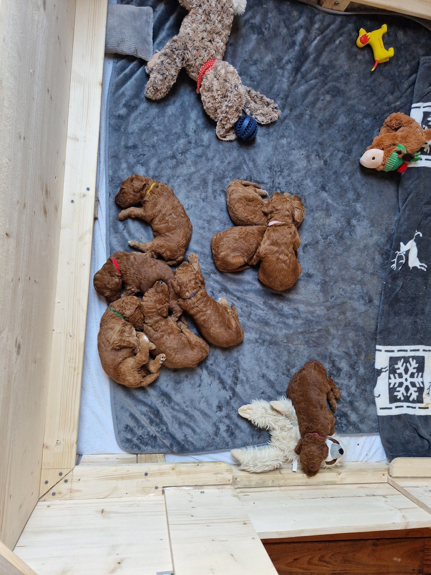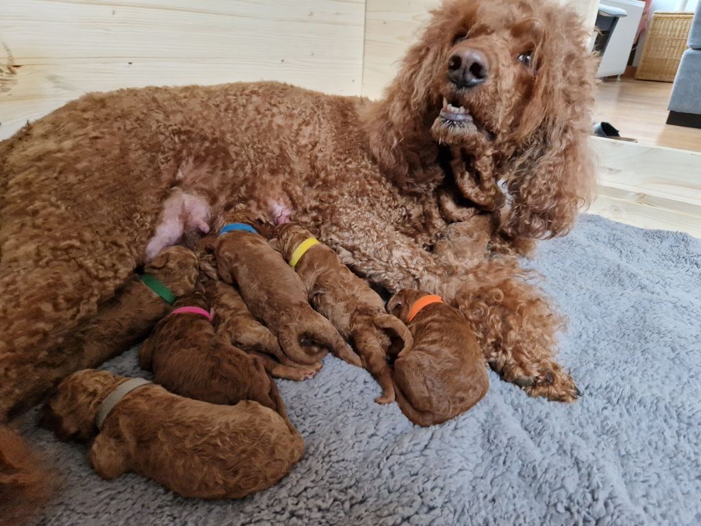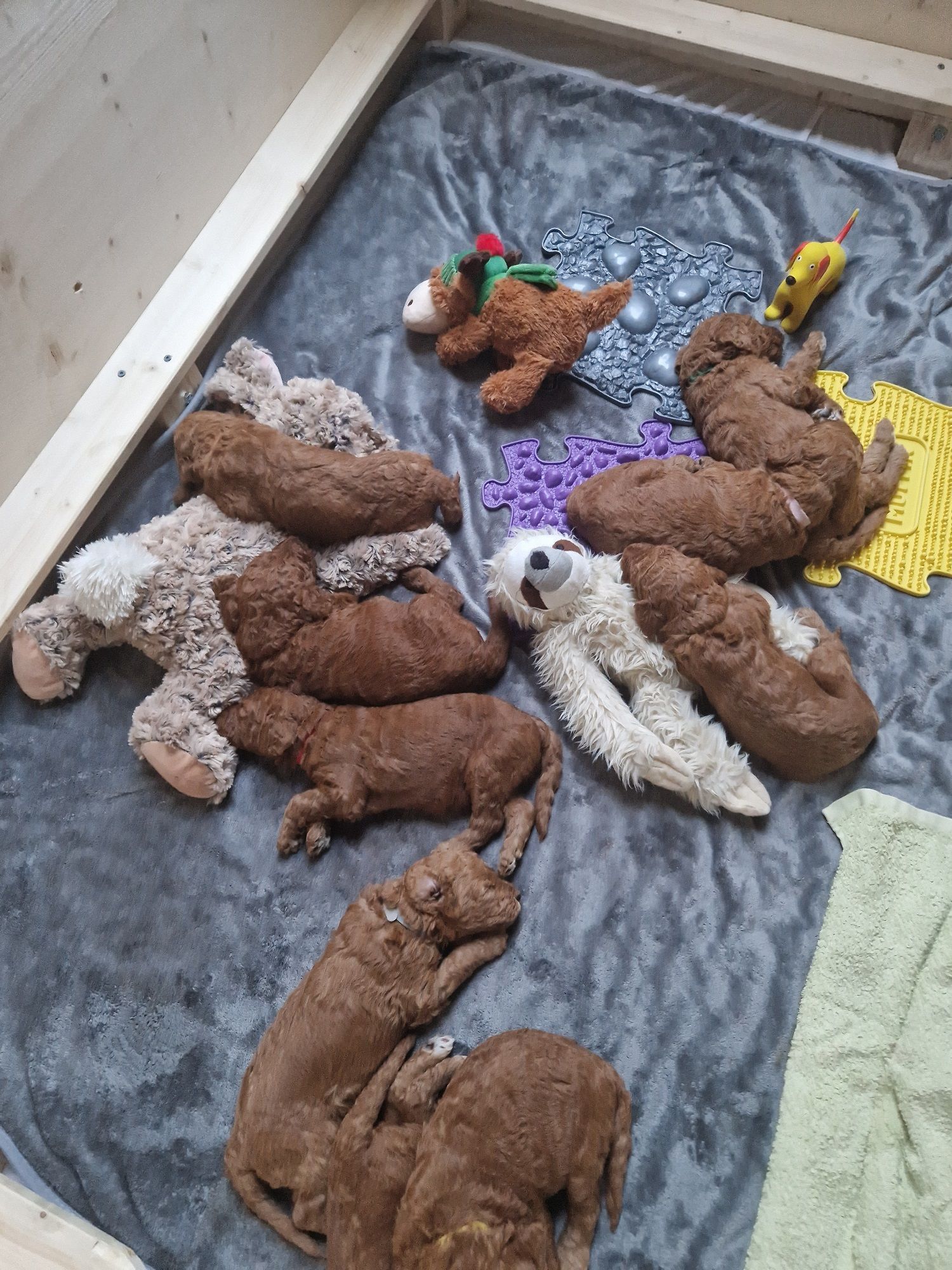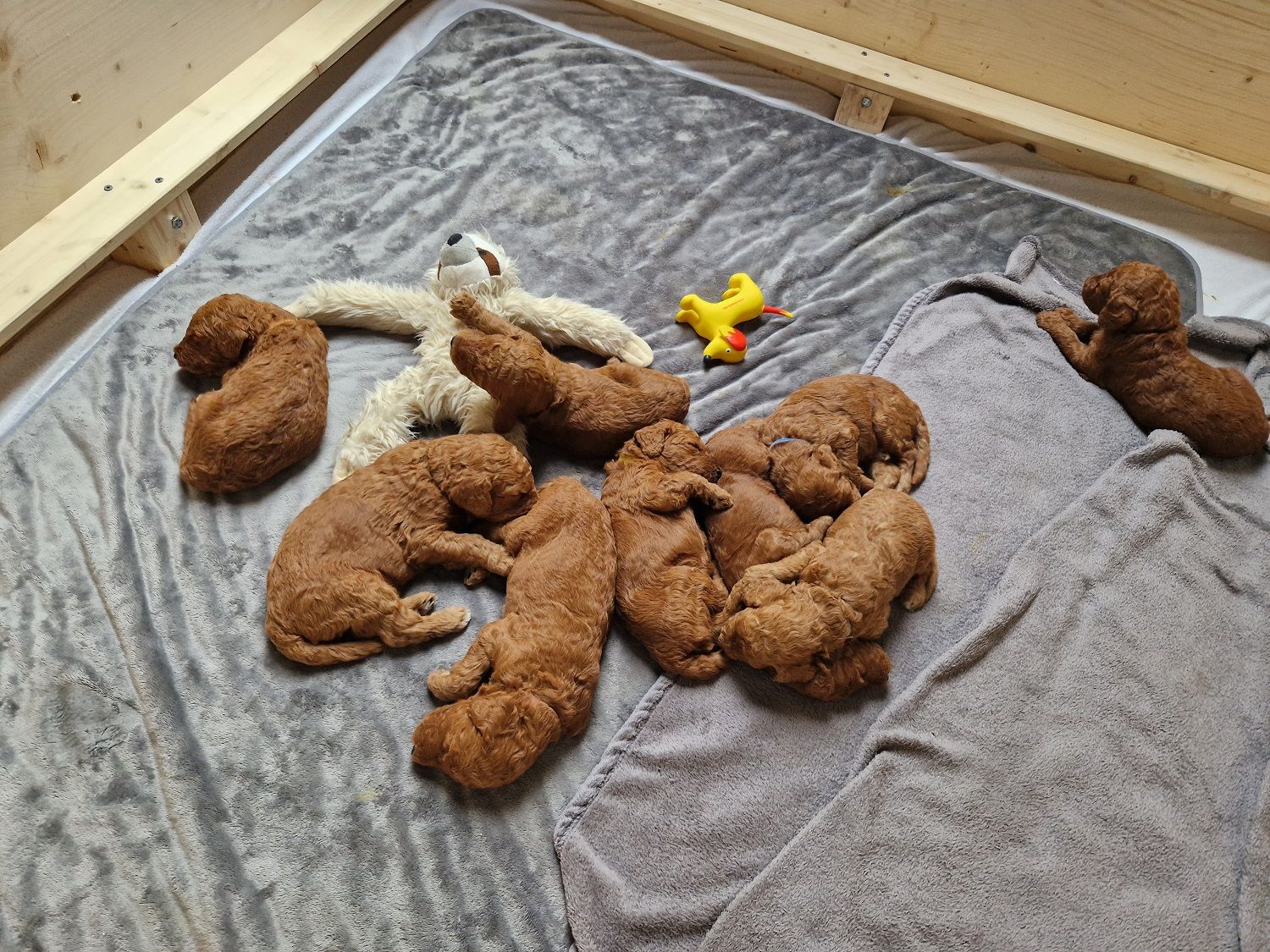 Insgesamt sind es 9 Welpen: 3 Mädchen und 6 Jungs.