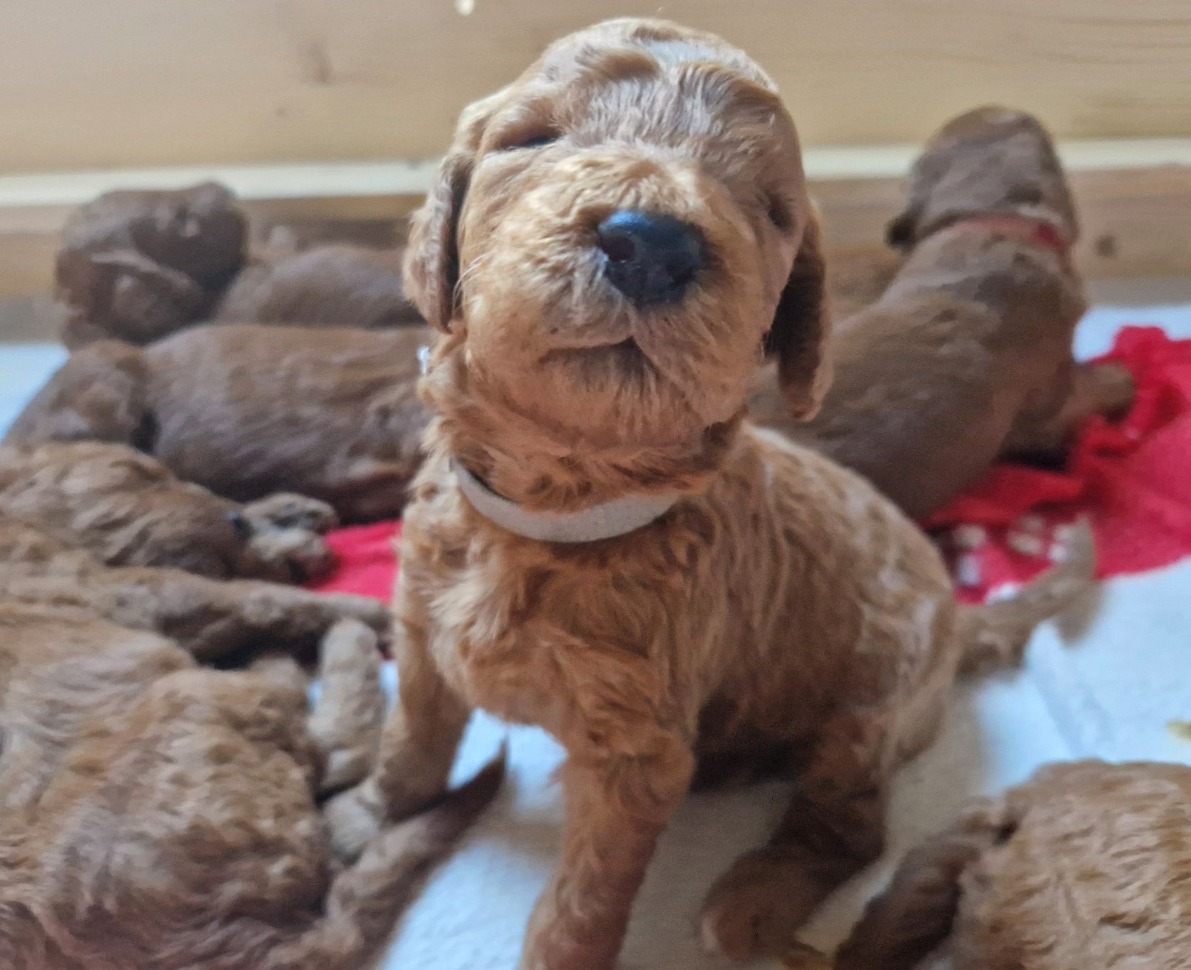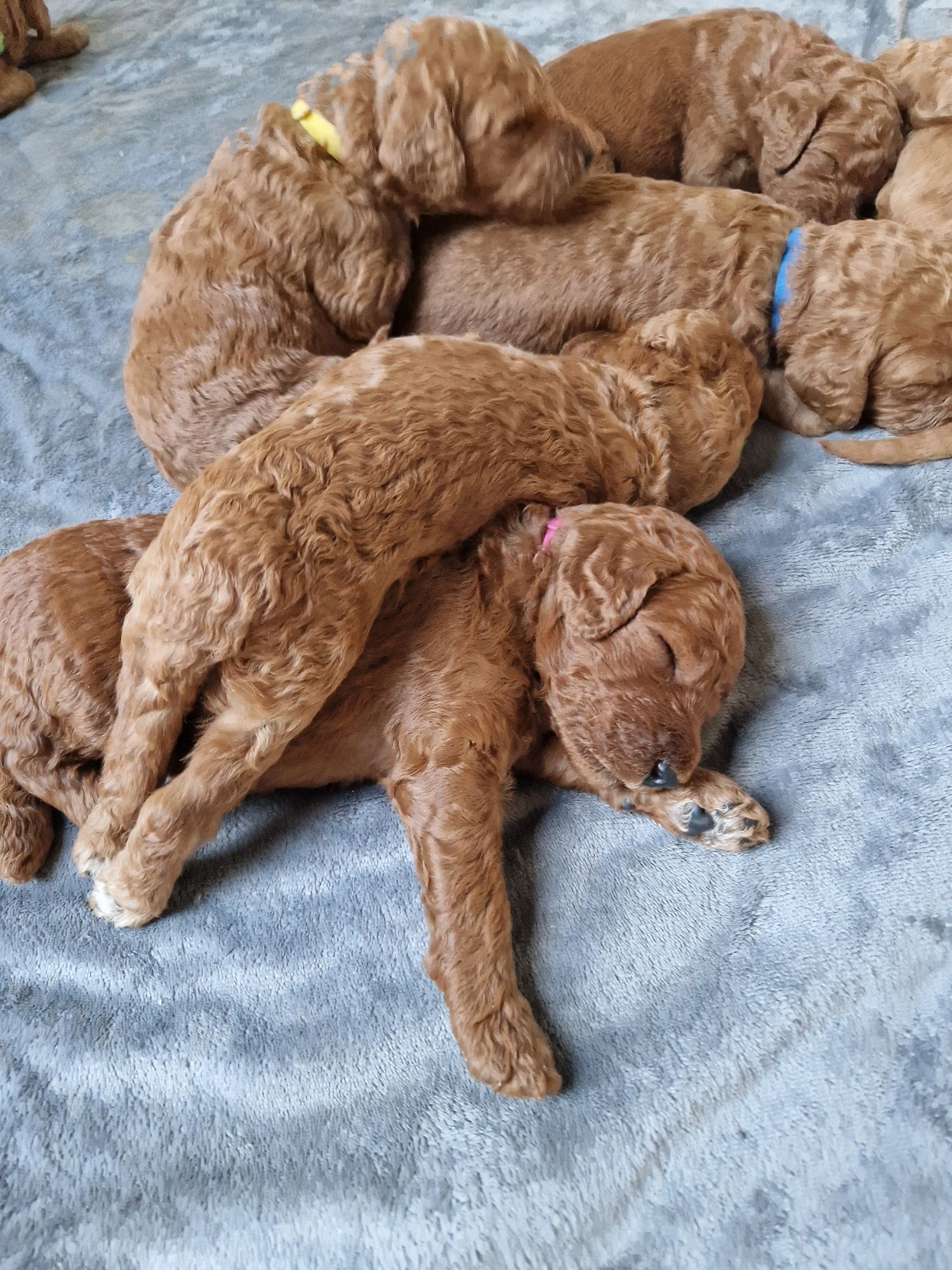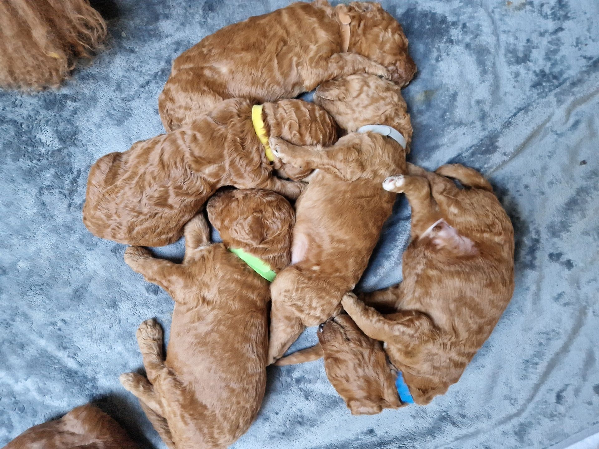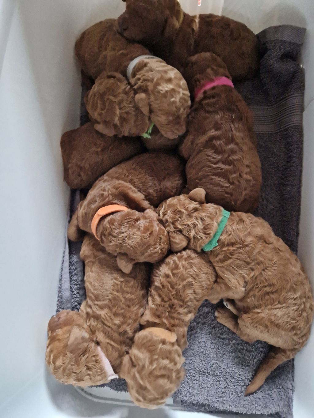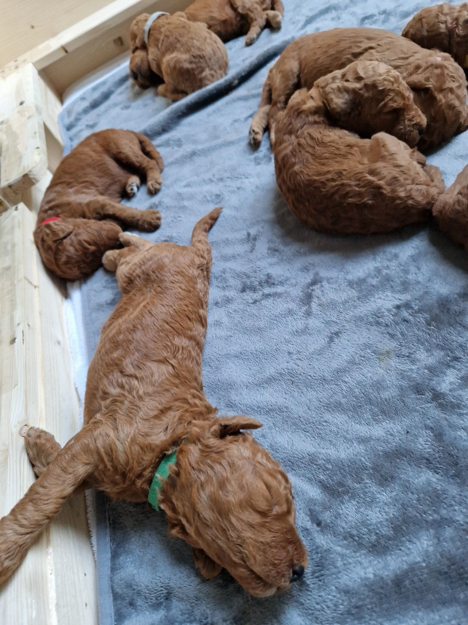 Insgesamt sind es 9 Welpen: 3 Mädchen und 6 Jungs.