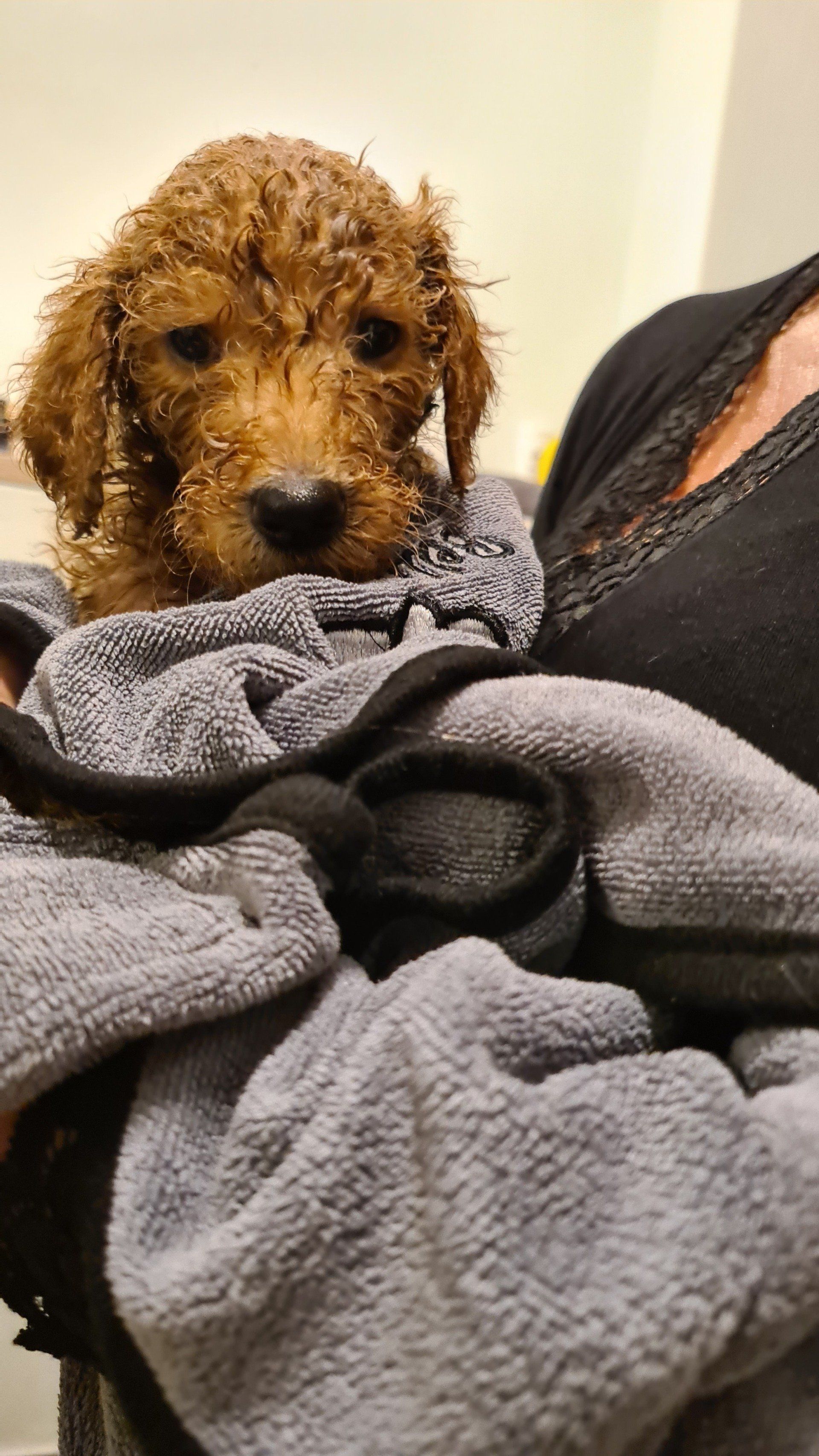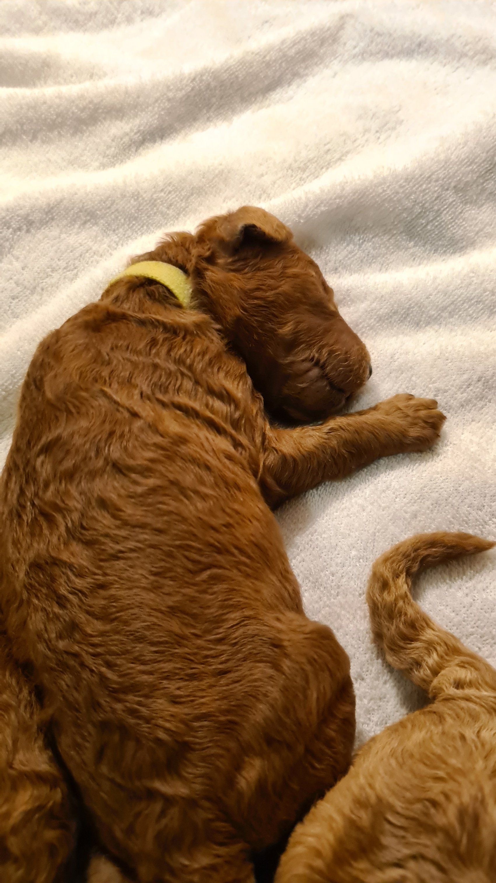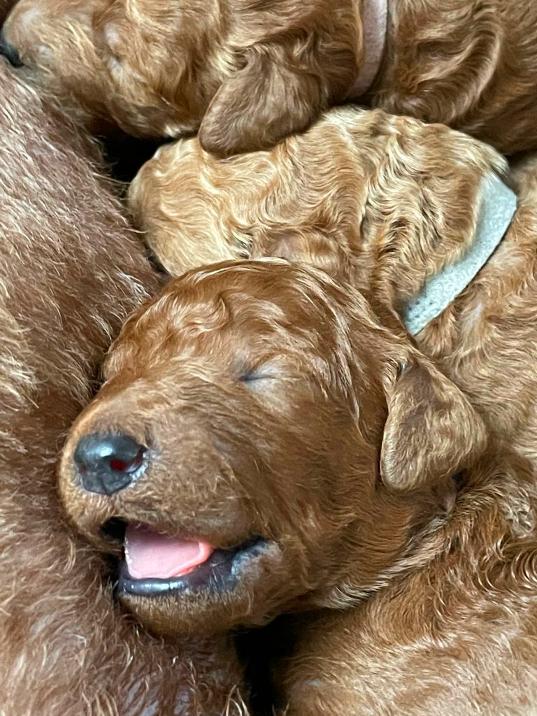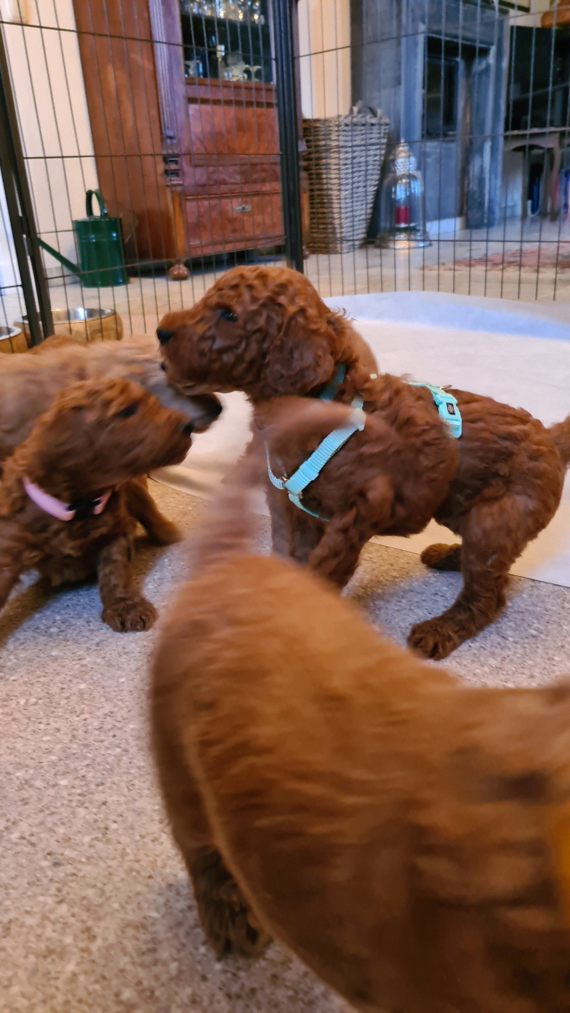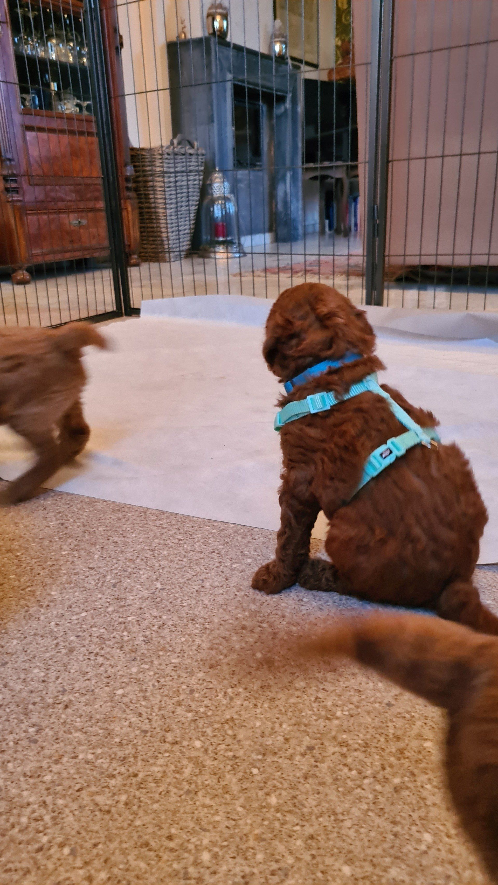 Insgesamt sind es 12 Welpen: 9 Mädchen und 3 Jungs (Dunkelblau / Braun / Grau), und Frida kümmert sich super um die Kleinen.